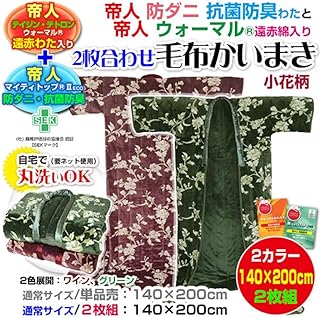 帝人マイティトップII 防ダニ 抗菌防臭 帝人ウォーマル 遠赤綿入り 2枚合わせ毛布かいまき布団 140×200cm 2色組