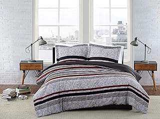 LONDON FOG プリントとストライプ掛け布団 Full/Queen CS3480FQ-1500