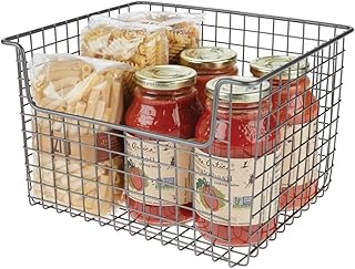 mDesign 家庭用 積み重ね可能 金属ワイヤー 収納 オーガナイザー ビン バスケット ハンドル内蔵 キッチン キャビネット パントリー クローゼット 寝室 バスルーム - 幅12.5インチ 6パック - グラファイトグレー