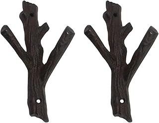 Ogrmar 2個 装飾枝 鋳鉄製 壁フック ハンガー 高耐久 家庭用収納ラック (ブラック)