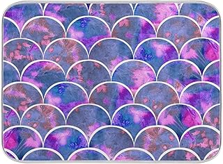 ZzWWR パープル 花柄 マーメイド スケール 吸収性 食器乾燥マット 16インチ x 18インチ マイクロファイバー キッチン カウンタートップ テーブルプロテクター 多目的カウンターラック シンク水切りパッド