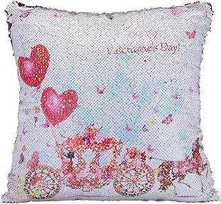 Ainik マーメイド 枕カバー バレンタインデー マーメイド 枕カバー スパンコール スロー 枕カバー 装飾的 色が変わる クッションカバー ソファ 寝室 車 子供 16 x 16インチ (馬車の中の女の子)