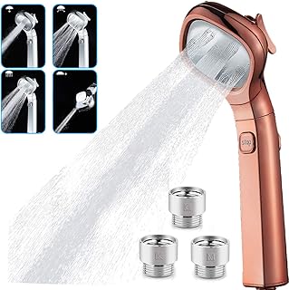 【2020最新】シャワーヘッド80%節水 空気増圧 水漏れなし 4階段モード 水量調整 極細水流 取付簡単 国際汎用基準G1/2 バス用品軽量 便利で実用的 (ローゼゴールド)