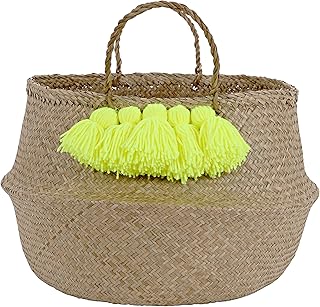 Meri Meri(メリメリ) バスケット ネオンイエロー 約45x44x42cm タッセル付きバスケット NEON YELLOW 159661 (30-0071)