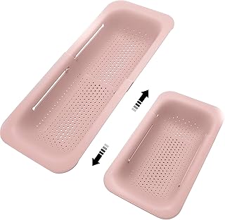 シンクの水切りとストレーナーバスケット 格納式 プラスチック 果物 野菜 ストレーナー 水切りバスケット キッチン用 (長さ14.3インチ-19.4インチ) (ピンク)