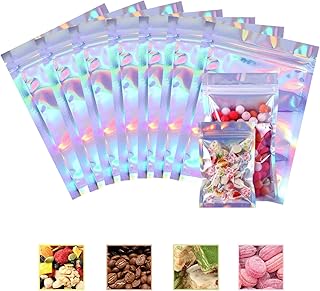 100パック 再密封可能 匂い防止バッグ ホイルジップロックバッグ アルミホイルバッグ フラットメタリックマイラーホイルフラット食品ストレージポーチ ホログラフィックレインボーカラー(100個、12 x 20 cm / 4.7 x 7.9インチ)