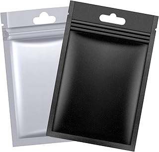 ホイルポーチバッグ 200個 再密封可能な防臭バッグ マイラージップロックバッグ アルミホイルバッグ メタリックマイラーホイル フラットフードストレージバッグポーチ (ブラック)