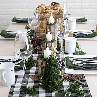 FSY 13インチ x 70インチ バッファローチェックテーブルランナー プレースマット 格子縞マット4枚付き ブラックホワイト格子縞テーブルランナー プレースマット 屋内屋外パーティー装飾 (ホワイト/ブラック、13インチ x 70インチ / 12インチ x 18インチ)