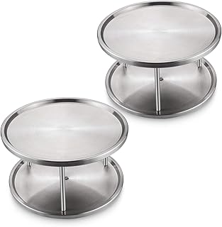 (1 Tier - 2 Pack) - 1 Tier Lazy Susan 2 Pack: Stainless Steel 360 Degree Turntable - Rotating 2-Level Tabletop Stand For Your Dining Table, Kitchen Counters And Cabinets - Turning Table Spice Rack Organiser Tray - 2 Pack