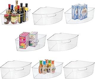 mDesign キッチンキャビネット プラスチック Lazy Susan ストレージオーガナイザー フロントハンドル付き 大きなパイ型 1/4ウェッジ、深さ6インチのコンテナ 食品に安全 BPAフリー 8個パック クリア
