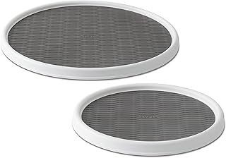 (Pack of 2, 30cm & 46cm, White/Gray) - Copco 5220594 Non-Skid Pantry Cabinet Lazy Susan Turntable, 30cm and 46cm, White/Grey, 2-Pack