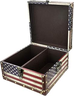 DreamsEden 大型ヴィンテージ装飾ストレージトランク - 木製アメリカ国旗宝箱 13.8インチ x 11.8インチ x 6.9インチ