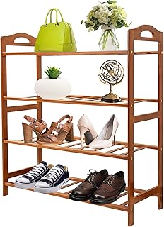 Yiffly 竹製靴ラック オーガナイザー 自立式靴棚 4段 玄関 部屋 寮に最適 (4段-26.8インチ)