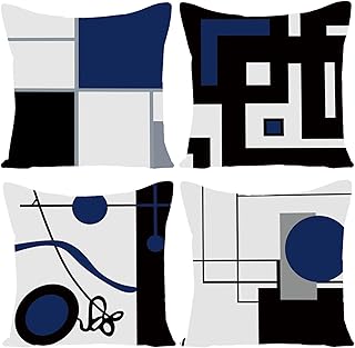 WILPROO ブラック ダークブルー 幾何学模様 装飾クッションカバー 4枚セット 20インチ x 20インチ モダン 幾何学的 グレー ブラックとレッド 格子縞 装飾 不規則 隠しファスナー付き カウチベッド用