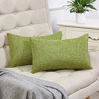 Anickal コットンリネン装飾スローピローカバー グリーンランバー2枚セット 12×20インチ ソファカウチ装飾用