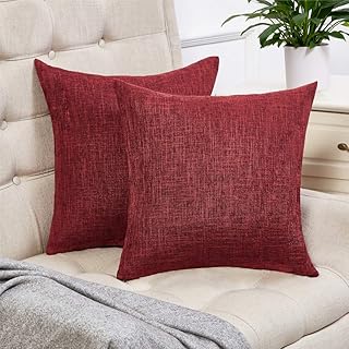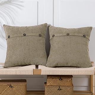 Anickal カーキ枕カバー 18x18インチ トリプルボタン2個セット シェニール織 田舎風 農家 装飾スロー枕カバー 正方形クッションケース ホームソファ カウチ 装飾用