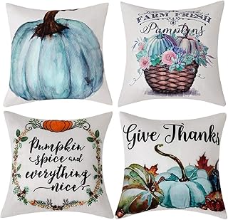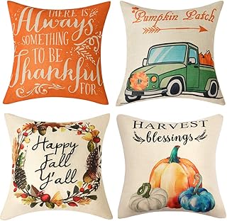 Anickal 感謝祭 秋用枕カバー 18x18インチ 4枚セット 秋の装飾 収穫 祝福 パンプキンパッチ 秋 農家 装飾 スロー 枕カバー ソファ カウチ ホームデコレーション