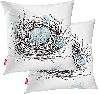 BaoNews 鳥枕カバー 鳥の巣 ロビンエッグ 正方形 20 x 20インチ 装飾スロー枕カバー コットンクッション ソファ 寝室 車 ブルー 02 2枚セット