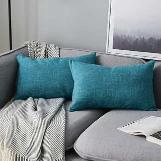 Anickal ランバー枕カバー 2枚セット ティールブルー 素朴なリネン 装飾クッションカバー 12 x 20インチ ファームハウス ソファ カウチ ホームデコレーション