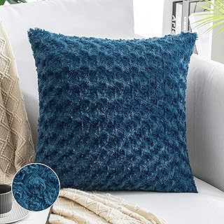 MIULEE 装飾スロー枕カバー 高級フェイクファジーファー スーパーソフト クッション枕ケース 装飾ダークブルーケース カウチ ソファ 寝室 車用 20 x 20インチ 50 x 50 cm