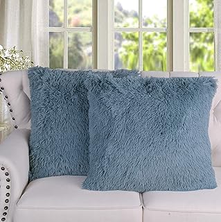 Home Soft Things シャギー枕カバー 4枚セット シルバーブルー 20インチ x 20インチ 暖かく快適 フラシ天 装飾用クッションカバー 正方形 カウチクッションカバー ホームインテリア