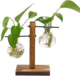 NEWCOMDIGI ガラス花瓶 花瓶 卓上ガラスプランター花瓶 異なるサイズ レトロ無垢木製スタンド 水耕植物のホームガーデン 結婚式の装飾 透明