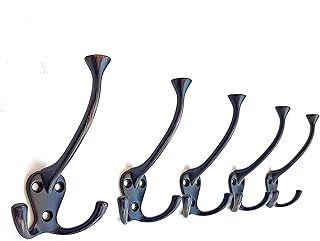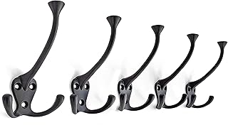 Ambipolar アイアンキャスト三脚フック 高耐久 ビッグトリプルレッグ/ダブルコートフックベース 玄関コートフック スカーフ ジャケットハンガー バスタオル ヘビーフック (5個パック、アンティークブラック)