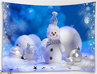 URBEST クリスマスタペストリー 壁掛け 雪 冬 異なるサイズ 寝室 リビングルーム 寮 壁装飾 (ラージ(79x59インチ) ブルー雪だるま)