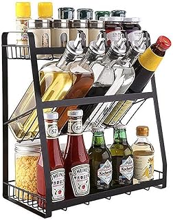 調味料ラック 調味料入れ スパイスラック キッチンラック 調味料収納 組み立てが簡単 調味料棚 滑り止め 防汚 防錆 防油 大容量 台所収納ラック (ブラック 三段式)