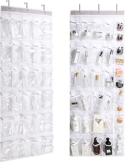 クリアポケット36個 – 2パック ドア掛けシューズオーガナイザー クローゼットドアシューズラックホルダー シューズソックスパントリー用ストレージと整理 58 x 22インチ (ホワイト)