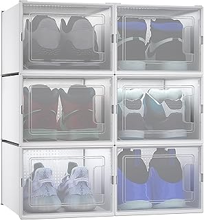 YITAHOME Lサイズ 靴箱 6個セット 靴収納オーガナイザー 高耐久 積み重ね可能 クリア靴収納ボックス ラック クリア引き出し ホワイト