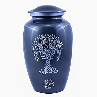 Hind Handicrafts Tree of Life 彫刻骨壷 人間の遺灰用 大人用 – 手作り葬儀用骨つぼ – Lサイズ – バッグ入り (6.25インチ x 6.25インチ x 11インチ、マットグレー)