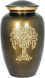 Hind Handicrafts Tree of Life 彫刻骨壷 人間の遺灰用 大人用 – 手作り葬儀用骨つぼ – Lサイズ – バッグ入り (6.25インチ x 6.25インチ x 11インチ、アンティーク銅)