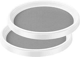 滑り止め レイジー スーザン ターンテーブル キャビネット オーガナイザー - 360度回転 スパイスラック - 10インチ 回転 カラソウルパントリー、キッチン、カウンタートップ、化粧台ディスプレイスタンド ホワイト/グレー 2個パック