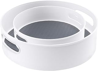 Nxconsu 2パック 2サイズ Lazy Susan ストレージ ターンテーブル オーガナイザー コンテナ キッチン キャビネット パントリー 寝室 オフィス バスルーム 冷凍庫 食器棚 食品 スパイス メイクアップ コスメ 回転収納 ビン ノンスリップ
