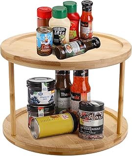oridom 竹製2段 Lazy Susan ターンテーブル キャビネットオーガナイザー スパイスラック 取り外し可能 回転トレイ オーガナイザー テーブル キッチン キャビネット 10インチ 360度