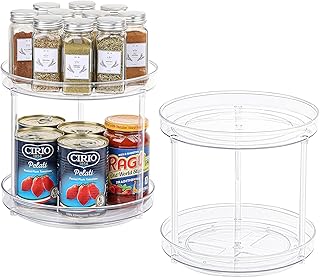 Vtopmart クリアレイジー・スーザン オーガナイザー 2個パック 2段 ターンテーブル レイジー・スーザン スパイスラック キャビネット キッチン カウンタートップ バスルーム メイクアップ パントリーの整理 収納 9インチ