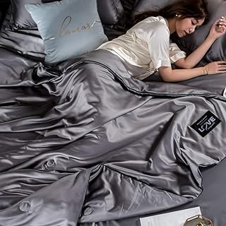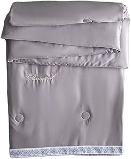 肌掛け布団 ひんやり 夏用 シルク 刺繍 接触冷感 冷房対策 キルトケット 洗えるダウンケット 掛け布団 薄手 防ダニ 抗菌 防臭 無地 布団圧縮袋付き (ダブル, グレー)