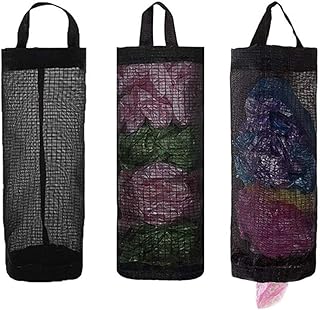 メッシュハンギングストレージディスペンサー プラスチックバッグホルダー ゴミ袋ホルダー 折りたたみ式ハンギングストレージバッグ 家庭とキッチン用 ブラック 3個パック