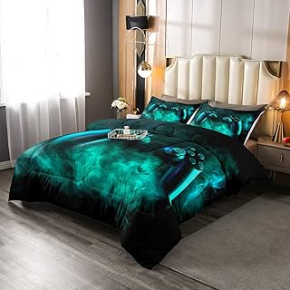 Erosebridal ゲーム掛け布団セット ツインサイズ キッズ ティーン ゲーマー 寝具 掛け布団 ビデオゲーム 人工羽毛 ファッション ゲーム キルト 掛け布団 男の子 ティーン ゲームルーム デコレーション ティールスモークデザイン