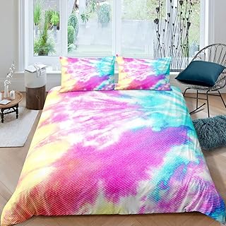 Manfei 水彩柄掛け布団カバーセット パステル絞り染め 掛け布団カバー ボーホー ヒッピーテーマ 寝具3点セット 子供 男の子 女の子 ソフトポリエステル キルトカバー 枕カバー2枚付き (掛け布団なし) フルサイズ