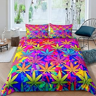 Erosebridal マリファナリーフ寝具セット クイーンサイズ カンナビスの葉 掛け布団カバー 子供 ティーン 大人 植物雑草 掛け布団/キルトカバー 装飾 3ピースベッドセット 枕カバー2枚付き 水彩画