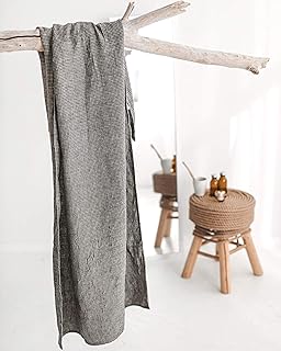 リネン100% 特大バスタオル 60x80インチ ブラック 天然ワッフル亜麻リネンブランケット 軽量 吸収性 薄手 バスタオル 大人用 速乾 XL ビーチタオル