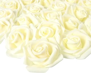 Juvale Rose Flower Heads - 100-Pack Artificial Roses, Perfect for Wedding Decorations, Baby Showers, Crafts - Off White, 3 x 3.2cm x 7.6cm
