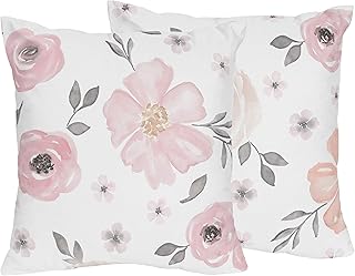 ブラッシュピンク、グレー、ホワイト装飾アクセントのためのスロー枕水彩花柄コレクションby Sweet Jojo Designs – 2のセット
