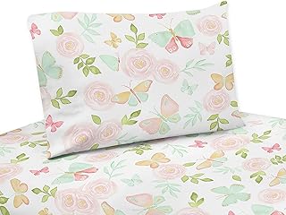Sweet Jojo Designs ブラッシュピンク ミント ホワイト 水彩 ローズツインシート バタフライフローラルコレクション - 3点セット グリーン ゴールド
