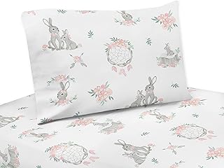 Sweet Jojo Designs ブラッシュピンクとグレー ウッドランド ボーホー ドリームキャッチャー 矢 ツインシーツセット グレー ウサギ フローラルコレクション - 3点セット - 水彩ローズフラワー