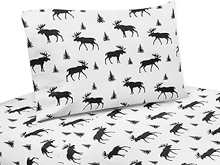 Sweet Jojo Designs ブラック&ホワイト ウッドランドムース ツインシーツセット 素朴なパッチコレクション用 3点セット