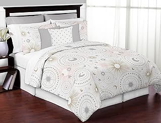 ブラッシュピンク、ゴールド、グレーとホワイトStar and Moon Celestialガールズフル/クイーンKid子供用寝具布団セットby Sweet Jojo Designs – 3ピース