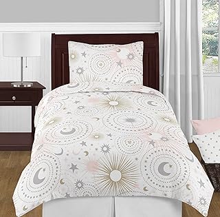 ブラッシュピンク、ゴールド、グレーとホワイトStar and Moon CelestialガールズツインKid子供用寝具布団セットby Sweet Jojo Designs – 4ピース